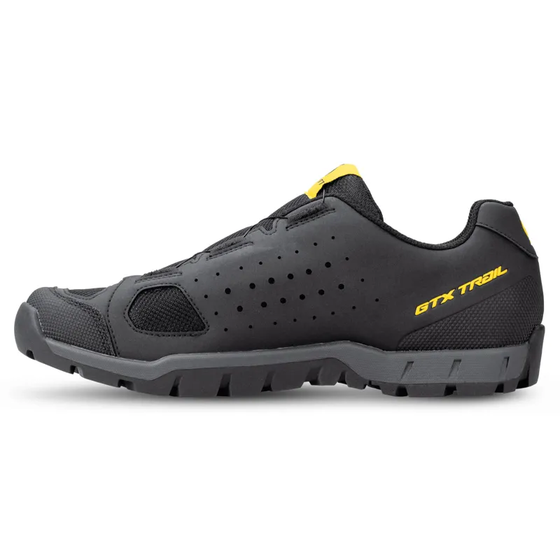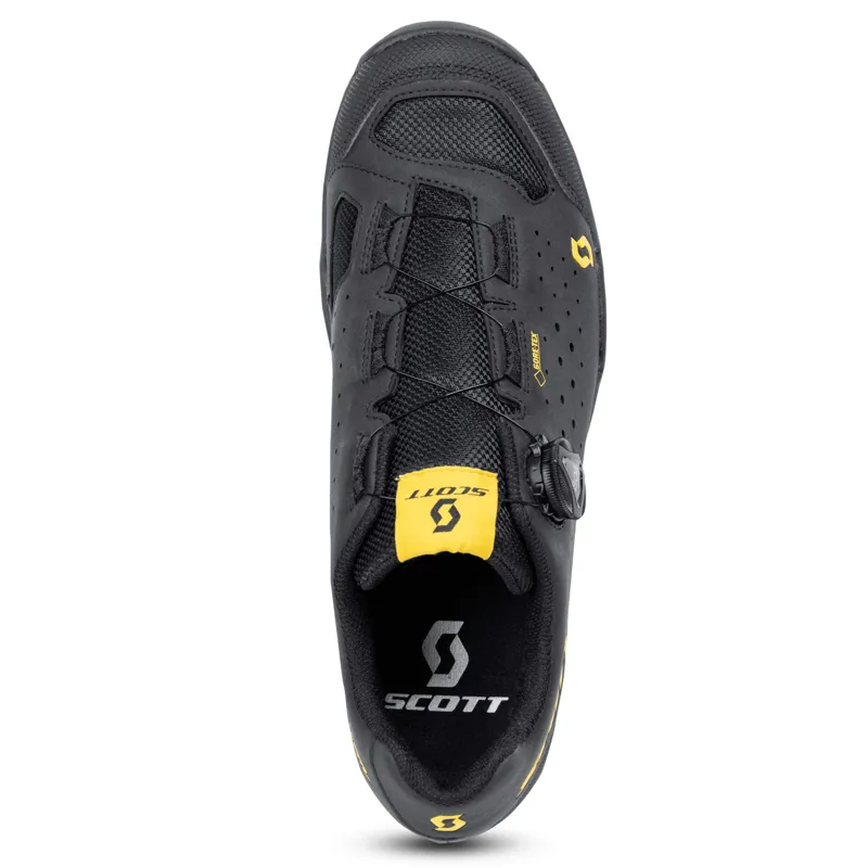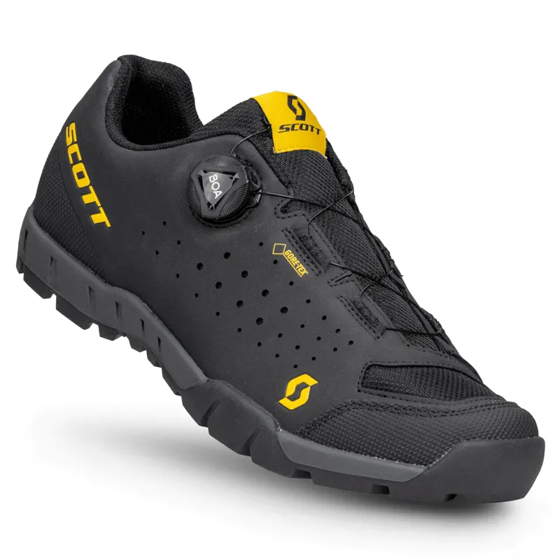 The SCOTT Sport Trail Evo GORE-TEX shoe is a versatile performer that delivers all-terrain performance and keeps you dry. The relaxed fit, Sticki Rubber outsole and walk-friendly nylon chassis keep you going strong on and off the bike. It features a BOA® Fit System IP-6, 3D mesh and synthetic upper, along with welded armor protection for durability.